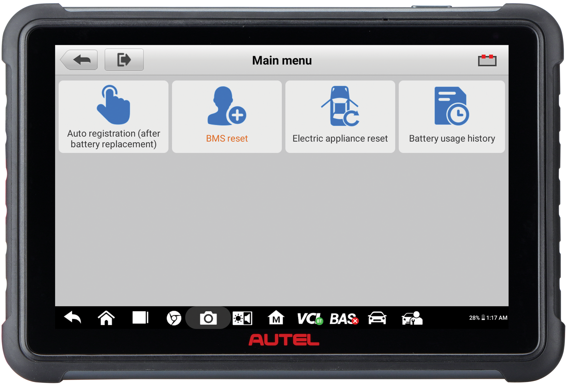 Equipped with a 7-inch Android touchscreen tablet, the BT609 offers quick access to the battery's health status, allowing for seamless registration of new batteries and comprehensive diagnostics of the battery and electrical system. With AutoVIN technology, vehicle and battery information is swiftly identified, while graphic instructions simplify battery positioning and testing.