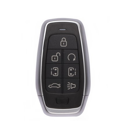 The Autel 7-button universal programmable IKEY, designed for use with the Autel MaxiIM KM100, offers functions including Lock, Unlock, Remote Start, Left Door, Right Door, Trunk, and Panic. This key is intended to replace OEM Smart Keys for a variety of vehicles from Hyundai to Volvo, ensuring broad compatibility with systems using 315/415 MHz. It boasts an impressive transmission range up to 40 meters (130 feet). Note: Battery (CR2032) and emergency blade not included. Comes with a one-year limited warranty.