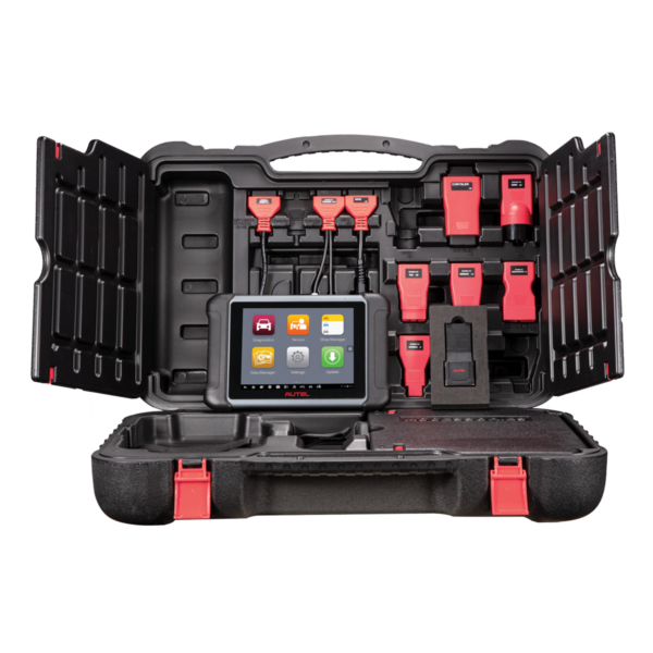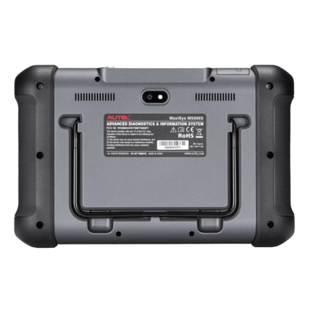 The MaxiSYS MS906S is an 8-inch Android diagnostic tablet with a hexa-core processor and 64GB memory, enhanced by a Bluetooth VCI Mini for easy OBDII connections. It offers advanced diagnostics, active tests, and bi-directional controls, alongside Scan VIN for quick vehicle identification and FCA Secure Gateway Access. It also features customizable Pre/Post-SCAN reports, with Cloud Data management and a Repair & Diagnostic Database on the horizon. Included are a blow-molded case, free technical support, one-year software updates, and a warranty.