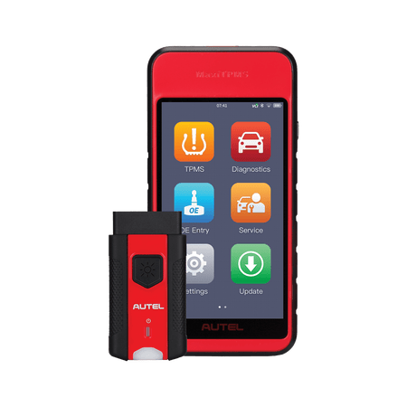 The MaxiITS600Pro is an advanced TPMS diagnostic and service tool, integrated with all systems diagnostics and numerous service functions, housed in a 5.5-inch color touchscreen Android tablet. It features Bluetooth connectivity for vehicle communication and is capable of handling TPMS diagnostics, including activating, reading, and relearning sensors, with the ability to program the 1-sensor for vast vehicle coverage. The device supports additional tire and brake analysis tools, offers lifelong TPMS software updates, and includes a year of warranty and diagnostic software updates.