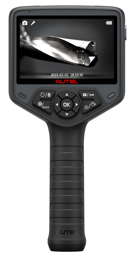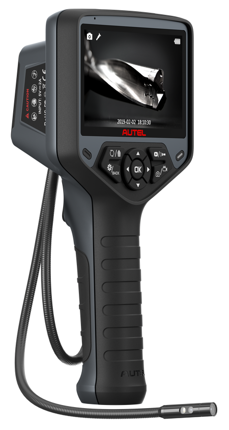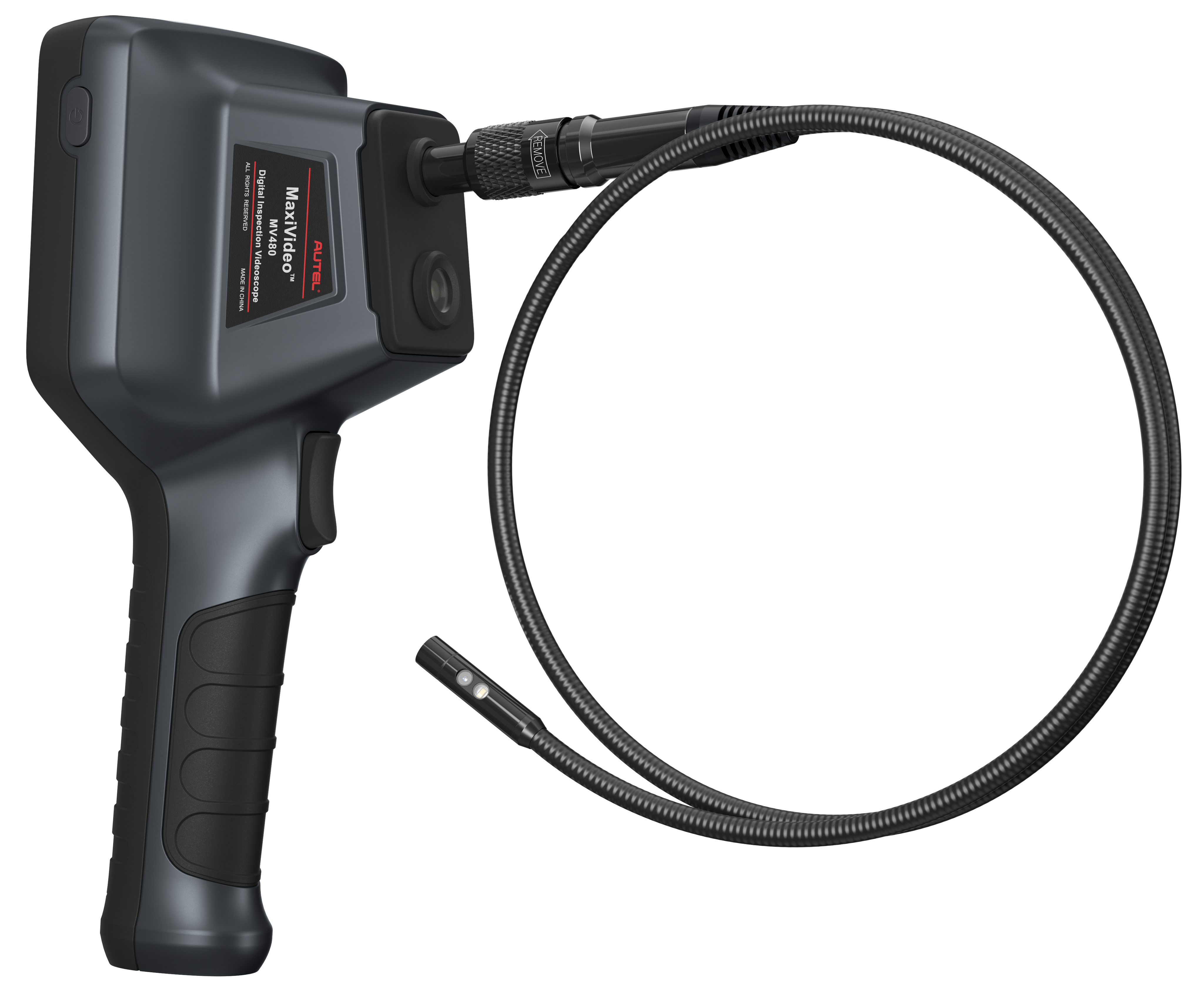 The MaxiVideo MV460 digital videoscope, with its semi-rigid 39.4-inch cable and adjustable LED light, offers a practical solution for inspecting hard-to-reach areas. It boasts a 2-megapixel camera for capturing high-resolution images and videos, complemented by a 3.5-inch color LCD display for vivid visuals. The device's user-friendly design features a quick-capture button and micro HDMI-output for easy streaming. Its 2600 mAh battery ensures up to 4 hours of continuous operation, making it a reliable tool for thorough inspections.