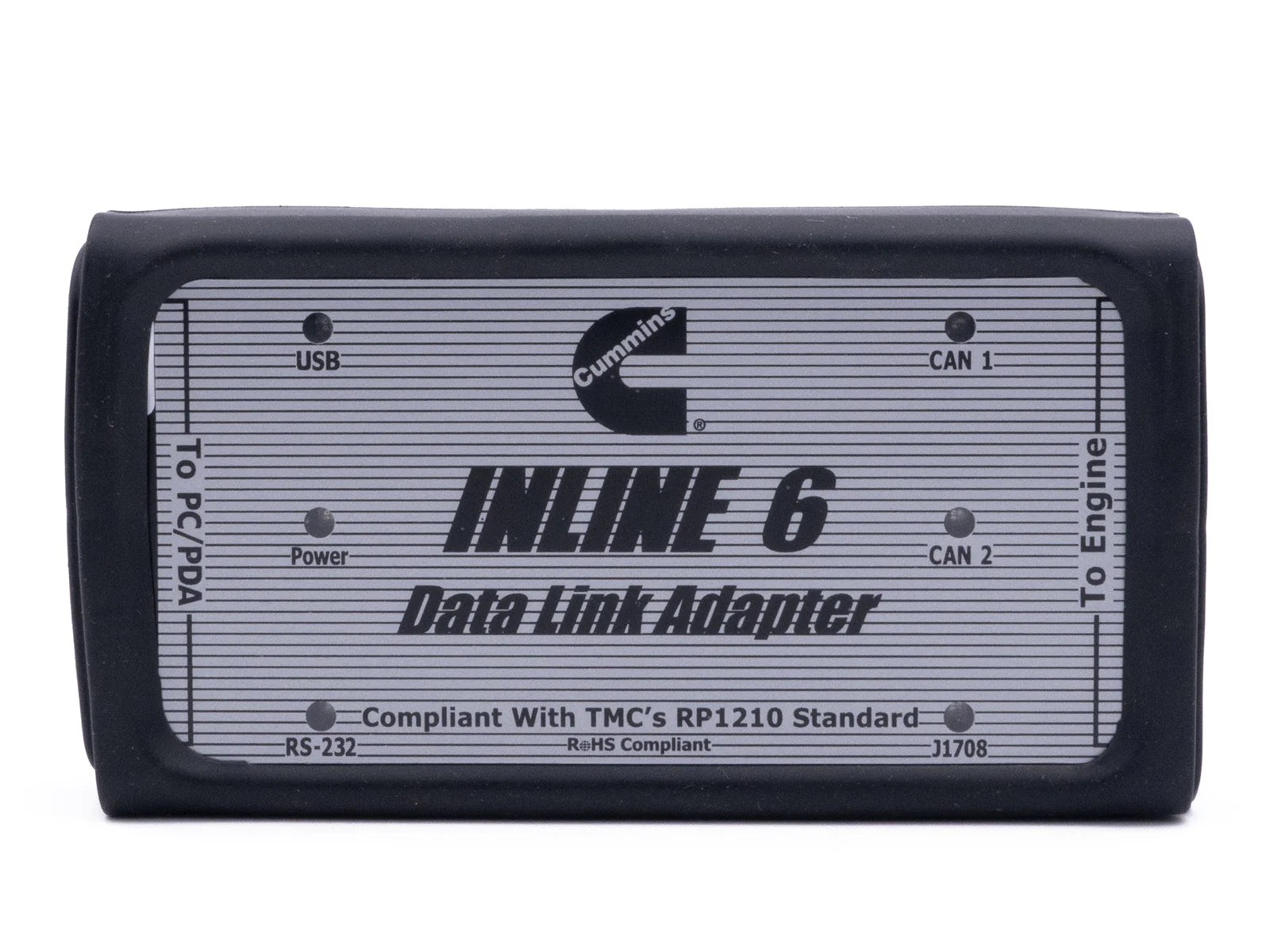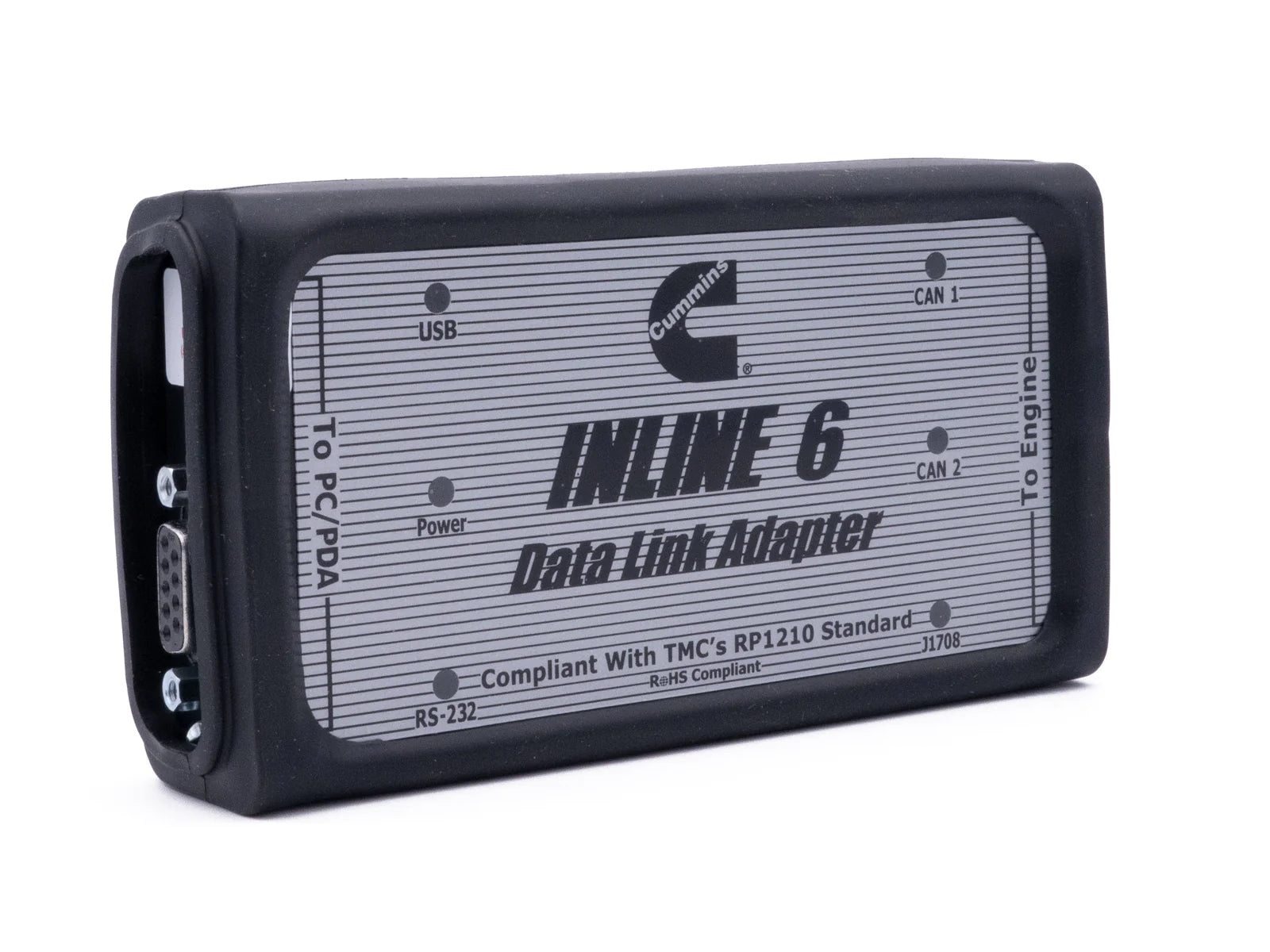 The Cummins INLINE™ 6 adapter offers versatile connectivity options for seamless communication with your PC. It can interface with your computer through either a 9-pin serial connector or a 4-pin standard connector USB connection. Moreover, the adapter establishes connections with vehicle power, the SAE J1708/J1587 data link, and two CAN/J1939 data links via a 25-pin serial connector.