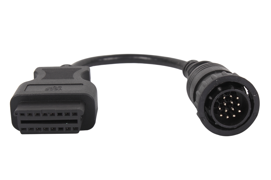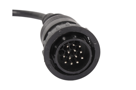 This diagnostic cable connects Cojali Jaltest diagnostics to Deutz-Fahr heavy equipment and Mercedes-Benz engines, including those in paving machines, milling machines, Terex equipment, and some cranes.
