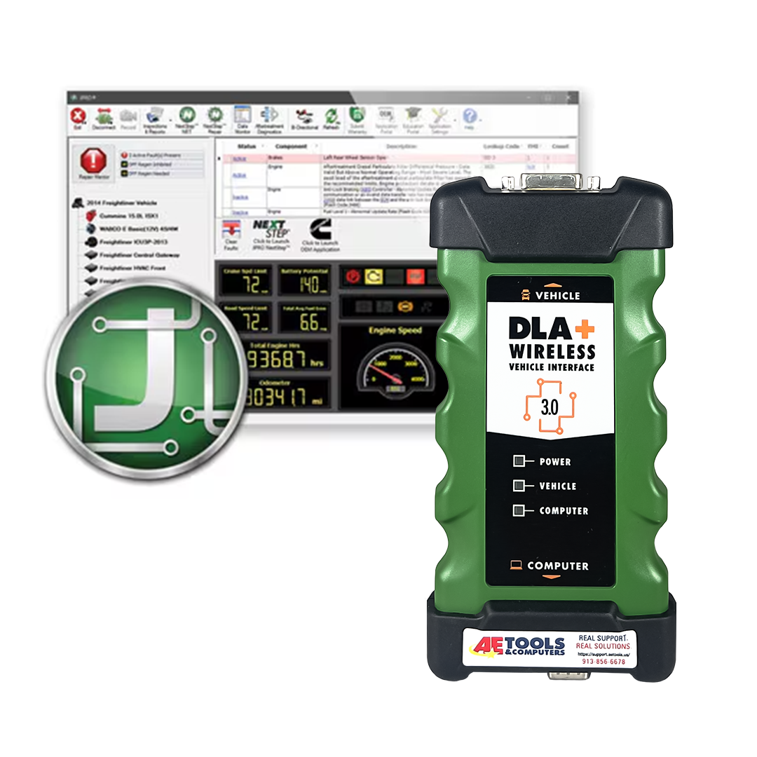 The JPRO DLA+ Wireless Adapter Kit is a rugged, high-performance vehicle communication interface designed for JPRO Professional and OEM diagnostic applications. It allows wireless connection between your PC and a vehicle’s electronic control units (ECUs), enabling fault code reading, live data monitoring, programming, and troubleshooting without being tethered to the cab.